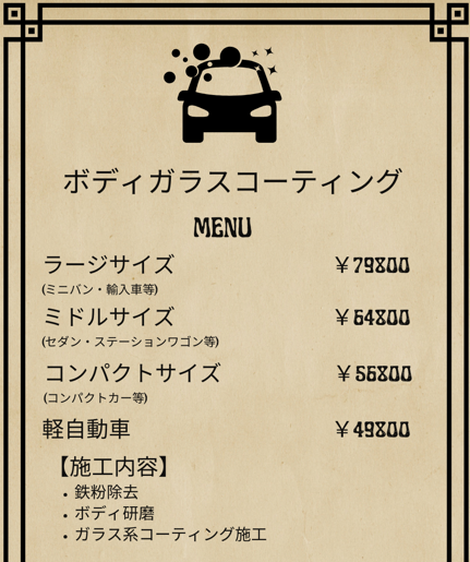 ボディの表面に硬い皮膜を構成し、汚れや傷に強くなり、洗車も非常に楽になりますよ!